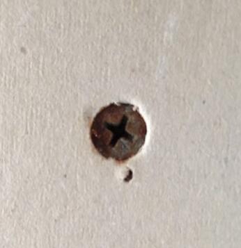 装修过程中,装修底板上会有很多钉眼,这些钉眼要打进石膏板里面,必须做防锈处理后,再填腻子,让钉眼处跟面板一样平滑。郭圣贵说,经过防锈处理的钉眼,墙壁表面没有黄色的点。而有些野马装修,为了省工,加上是隐蔽工程,没有对钉眼进行防锈处理,直接填腻子,这样做出来的墙壁,表面有可能出现锈点透出的黄色印痕。
